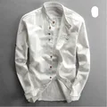 Men's Cotton Linen Shirts Long Sleeve Men Casual Slim Mandarin Collar Shirts High Quality Summer Beach Shirt plus size 6xl