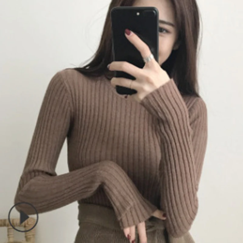 Best New Women Knit Sweater Women 2021 Winter Long Sleeve Slim Sweater Woman Bottom Vintage O Neck Pull Korean Pullover Women Sweater and You will save 54% or US $12.59 today