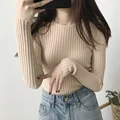 Costomer Scores and Reviews for New Women Knit Sweater Women 2021 Winter Long Sleeve Slim Sweater Woman Bottom Vintage O Neck Pull Korean Pullover Women Sweater