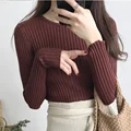 New Women Knit Sweater Women 2021 Winter Long Sleeve Slim Sweater Woman Bottom Vintage O Neck Pull Korean Pullover Women Sweater