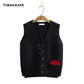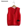 Best Short Sweaters for Women Plus Size V Neck Buttons Pockets Knitted Pullovers Casual Autumn Woman Sweater Vest Tops and You will save 8% or US $27.59 today