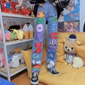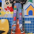 Women High Waist Jeans Japanese Harajuku Loose L Color Letters Street Straight Pants Sweet High Street Fashion Wide-leg Trousers
