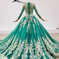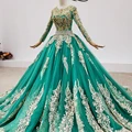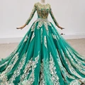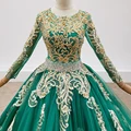Best HTL1784 Golden Sequined Applique Green Custom Evening Dress For Wedding Party 2020 O-Neck Long Sleeve Crystal Ball Gowns and You will save 50% or US $501.99 today
